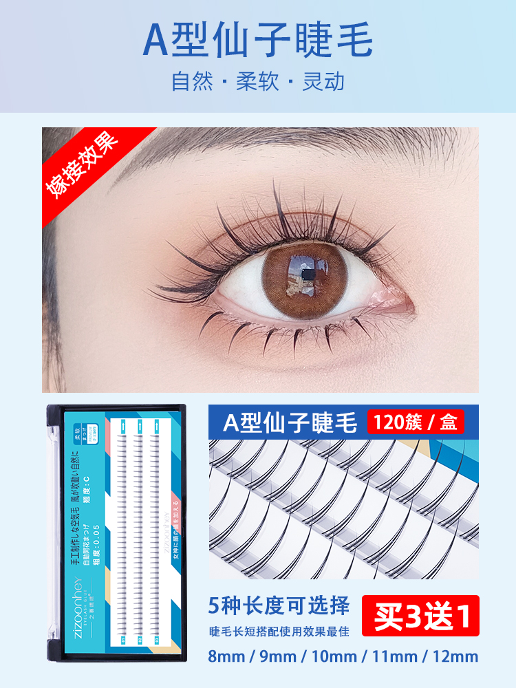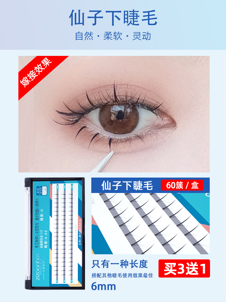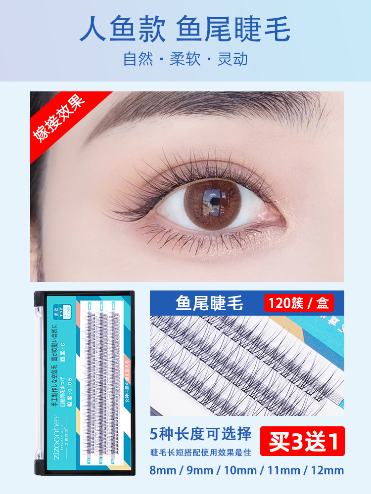 (Buy Three Delivery One) Fish Tail Fairy Eyelash Grafting Fake Eyelash Female Single Tuft Natural Emulation Self-Glued Eyelash