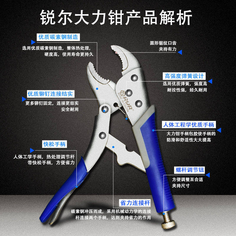 10 inch round nose pliers with rubber handle (recommended for household use) 10 inch light handle pliers (round mouth) 7 inch straight mouth pliers 7 inch industrial grade pliers (round mouth) 10 inch straight mouth pliers