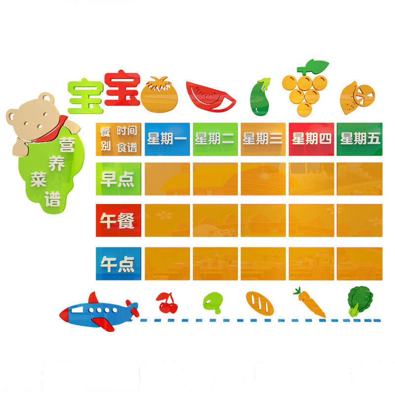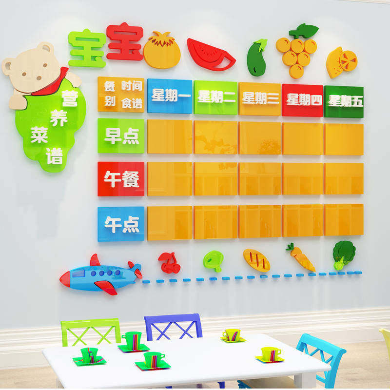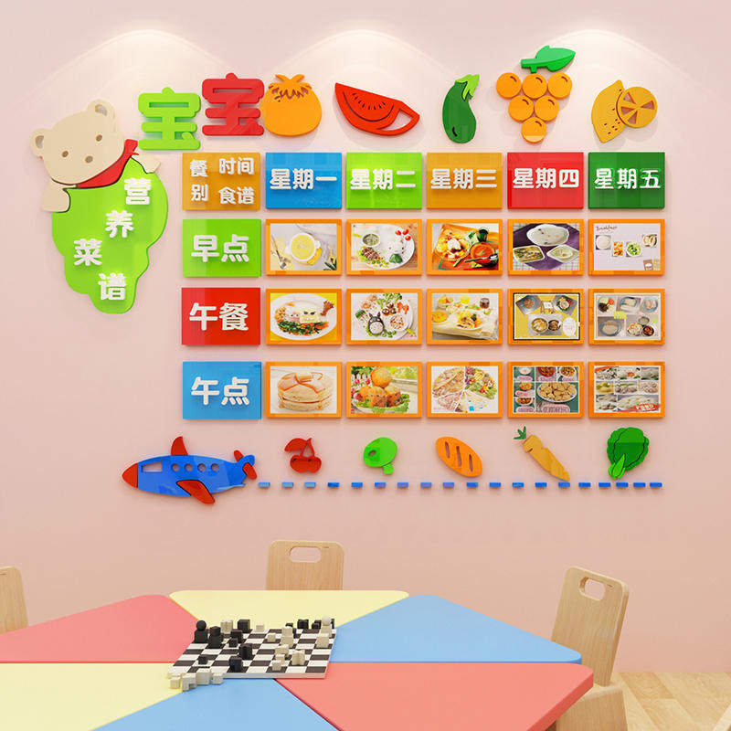 Kindergarten Wall Decoration Recipes Wall Stickers Acrylic Center Small Rice Table Daily Recipes Display Board Stickers