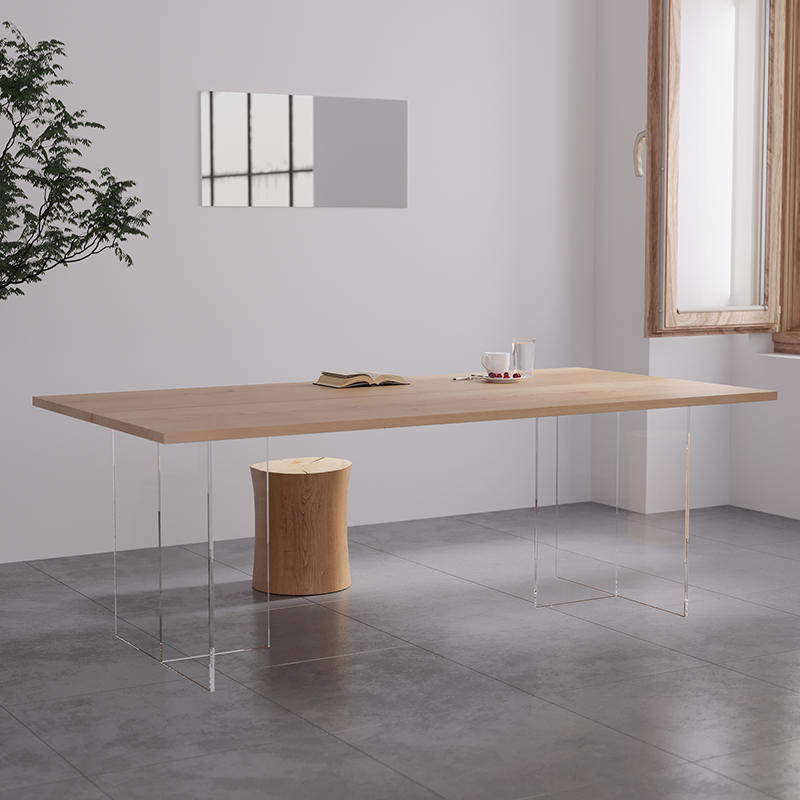 Solid wood large board double-split countertop desk acrylic suspended solid wood dining table simple office long table conference table