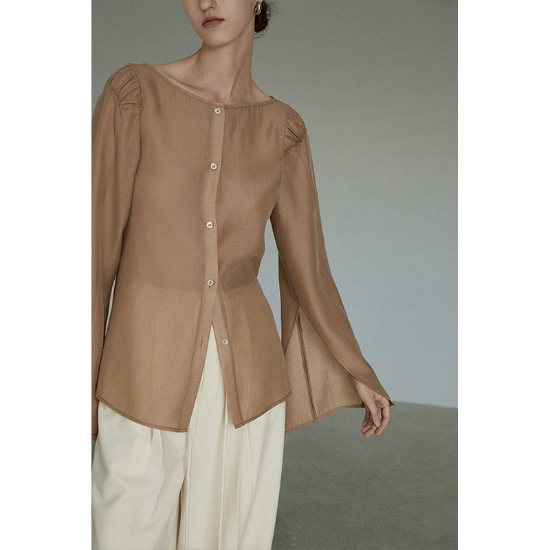 UNSPOKEN French shirt women's early autumn milk orange design sense niche top loose retro high-quality shirt