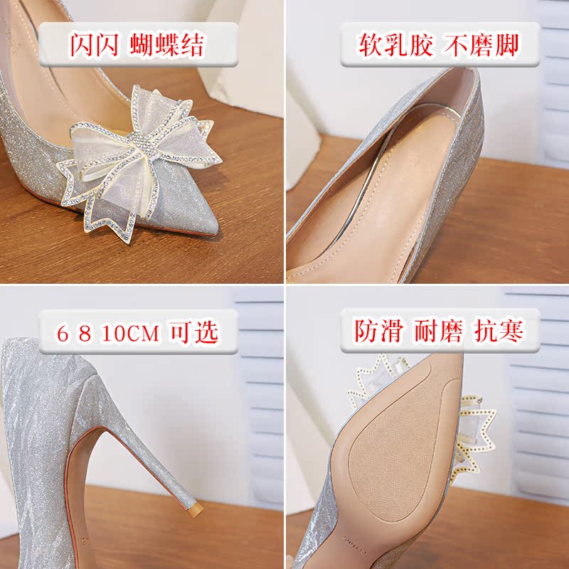 High-heeled shoes high-end crystal design sense fine heels ins fairy net red silver niche wedding shoes 2021 new women