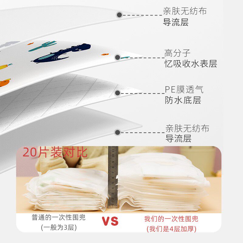 Children's disposable bib 4 layers thickened Velcro baby baby eating bib saliva towel independent bag waterproof