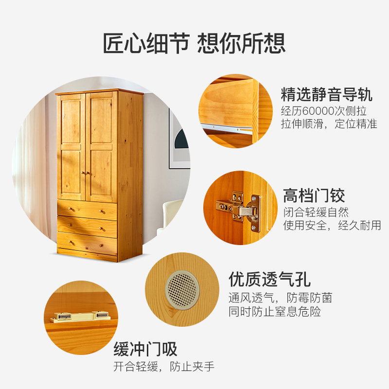 Happy Dream Treasure Solid Wood Double Door Three Drawers Wardrobe Children Pine Wood Small Wardrobe Small Family of Easy Cloister Furniture