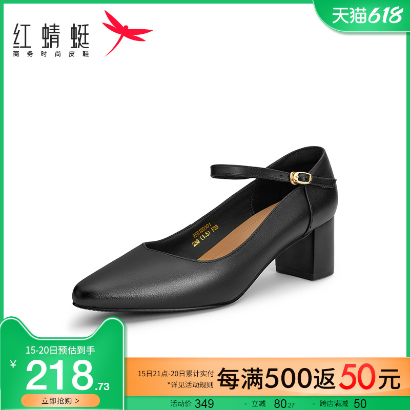 Red dragonfly 2022 Spring new retro coarse heel Mary Jane women shoes Inn wind High heels Shoes Comfort Single Shoes Woman