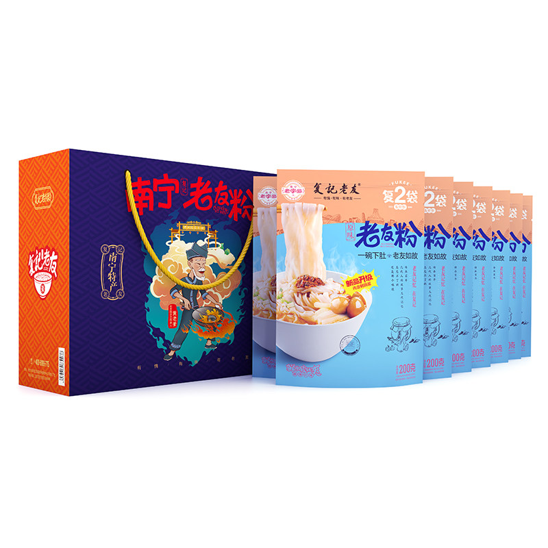 Fuji old friend powder 8 bags gift box Guangxi specialty Nanning Zhongshan Road Fuji old friend rice noodles boiled flour flat powder