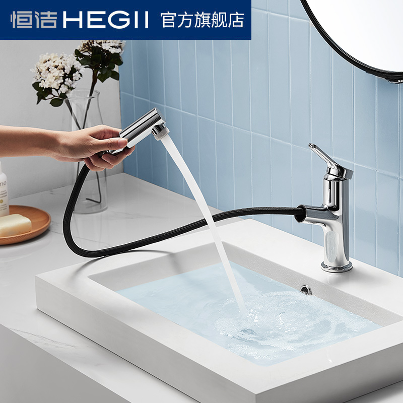 HEGII Hengjie faucet bathroom dressing room hot and cold double-cut household basin pull-out faucet