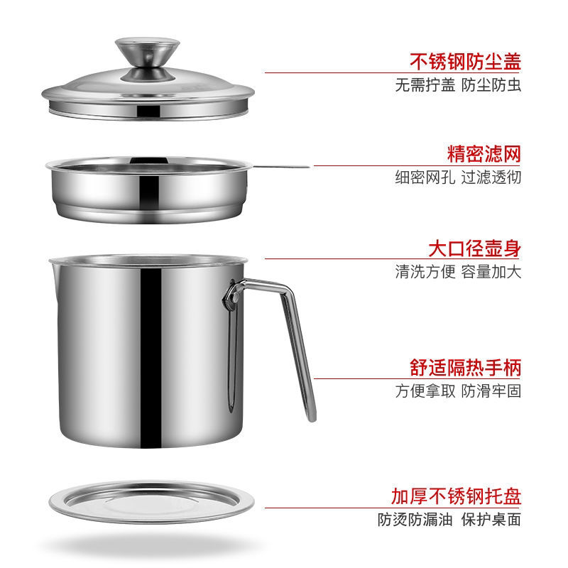 Oil pot stainless steel 304 home kitchen oil filter oil pot large capacity non-leakage pot oil pot oil filter pot