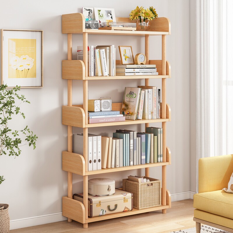 Little bookshelf at the desk with a shelf on the floor of multi-storey storage shelves in the bedroom living room