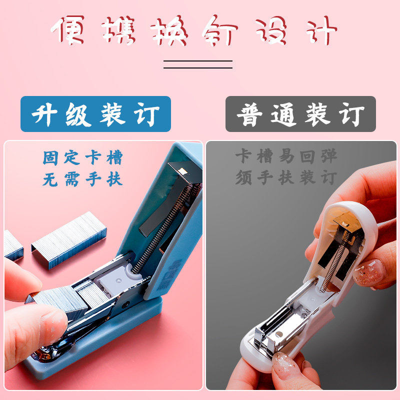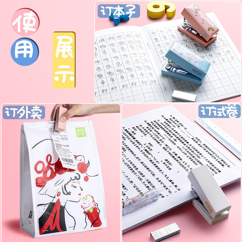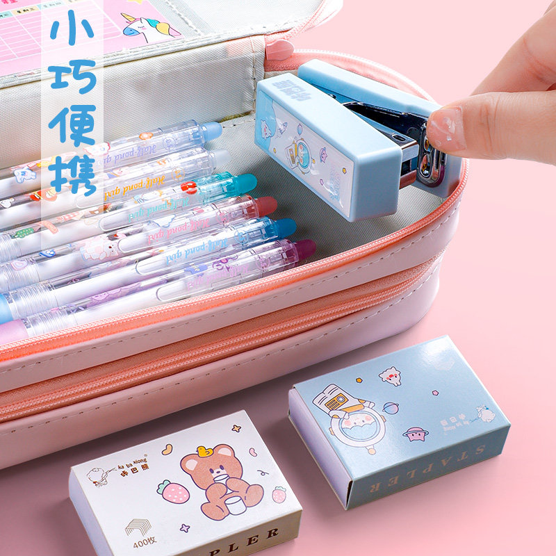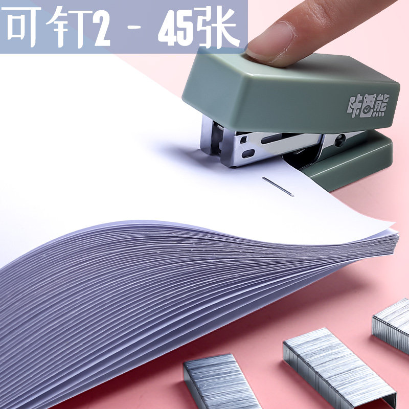 Mini Small Stapler Student Portable Small Stapler Cartoon Cute Super Cute Multifunctional Binding Machine Solid Color Manual Simple Home Office Stapler Small and Labor-Saving Hand-held Nail