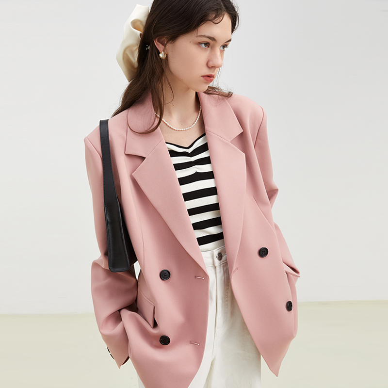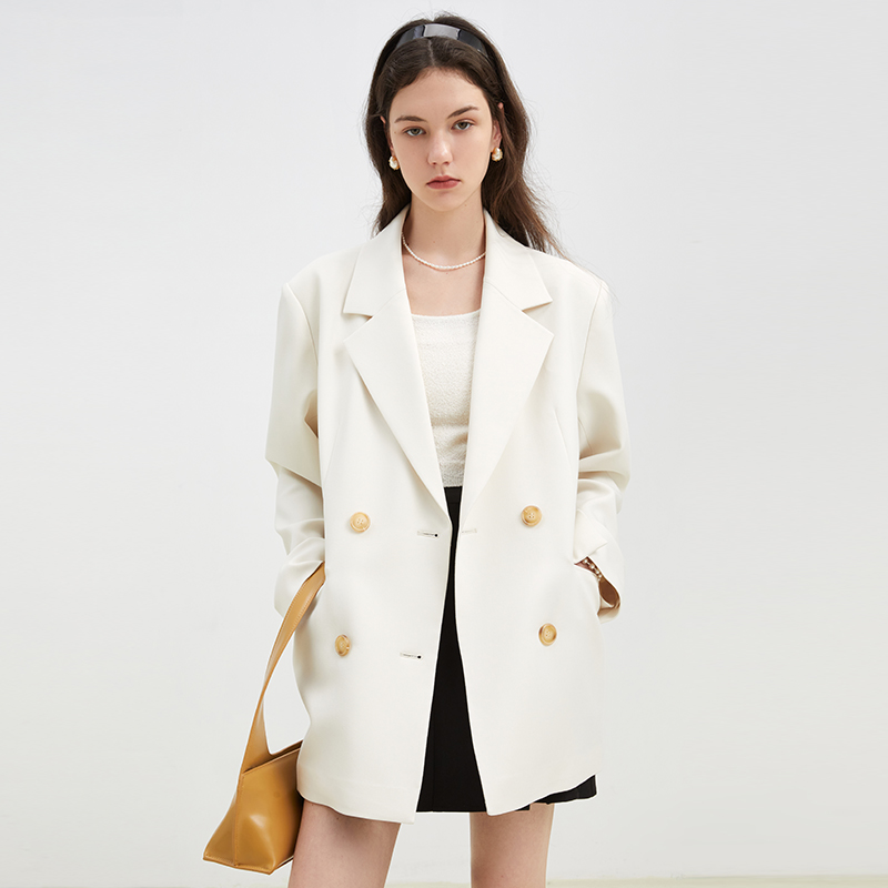 Van Lo 2022 Spring New Suit Jacket Woman Temperament White Advanced Texture Double-Row Buckle Loose Casual West Suit