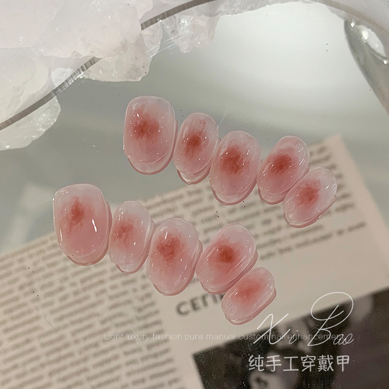 Wearing a short high-quality handmade custom blush blush fake nails 2022 new finished nail patch