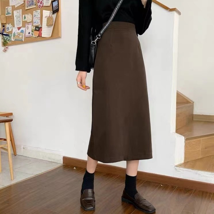 Lulu's customized store orange? Autumn and winter back slit high waist woolen skirt