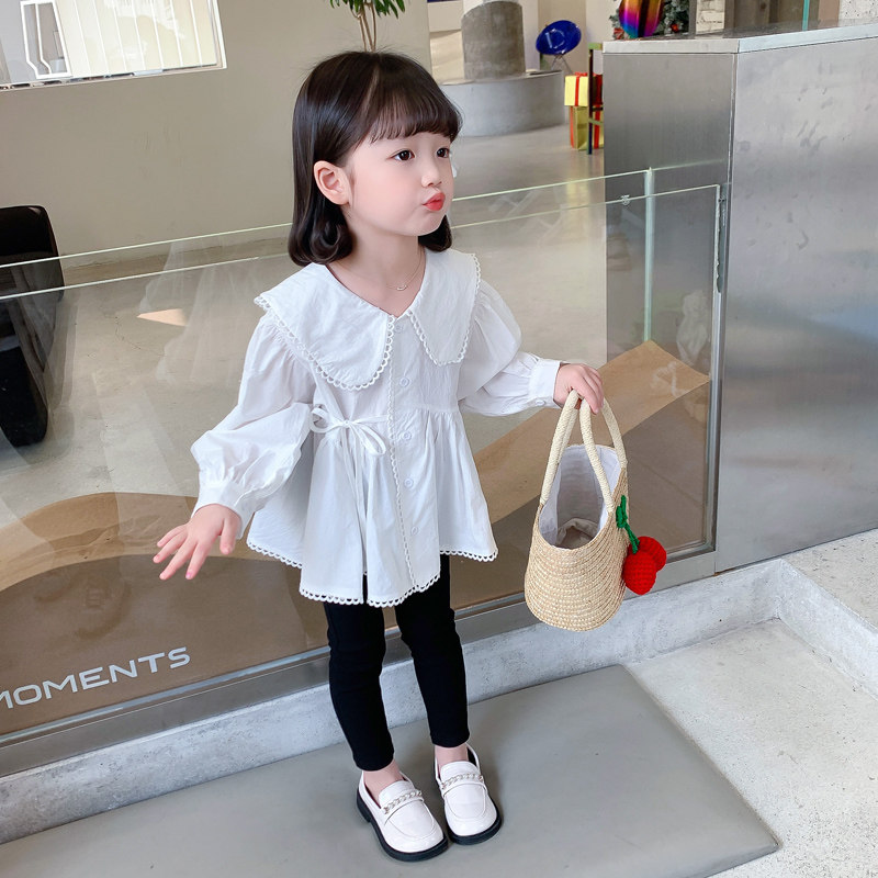 Girls' Shirts 2022 Spring New Western Style Children's Suits Autumn Shirts Baby Doll Collar Shirts Spring and Autumn Shirts