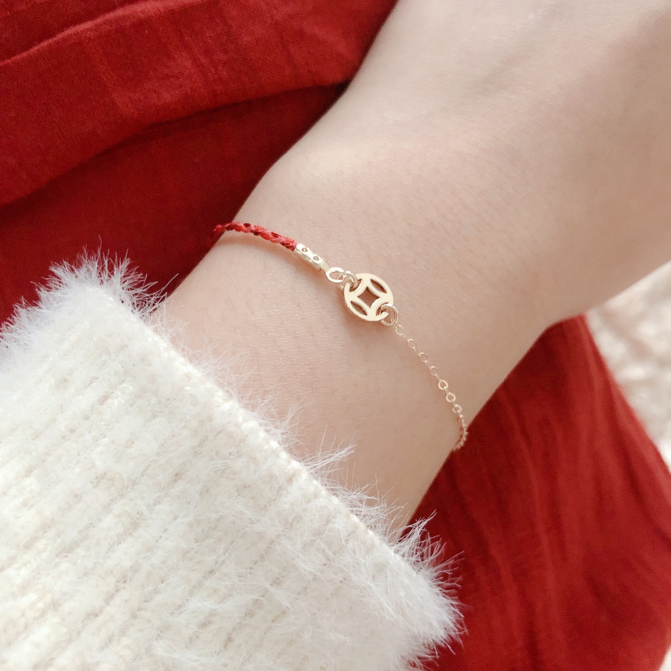Transshipment Lucky Hands Birth Year Red Rope Very Thin Hands Imported 14k Gold Packing Not Fading