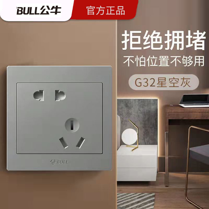 Bull socket 86 type switch home panel gray one open usb5 five-hole hidden wall porous whole house package