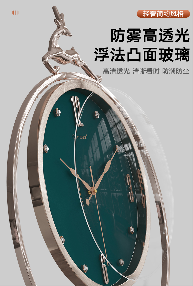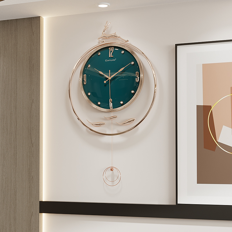Conpasse light lavish deer head muted clocks Nordic modern living room hanging bell minimalist creative fashion clock swing clock-Taobao