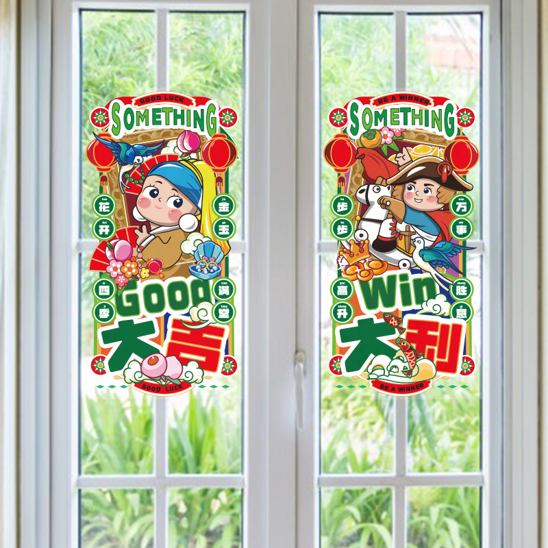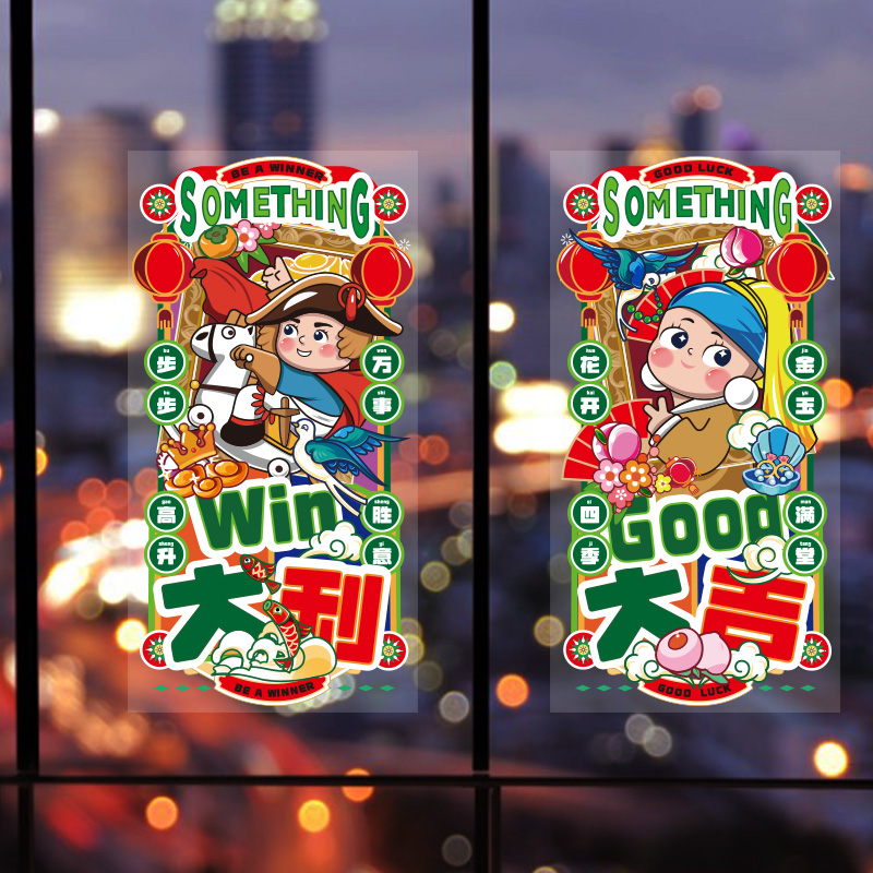 Window grille glass electrostatic stickers 2023 Year of the Rabbit window stickers Spring Festival New Year pictures creative high-end decorative blessing door stickers
