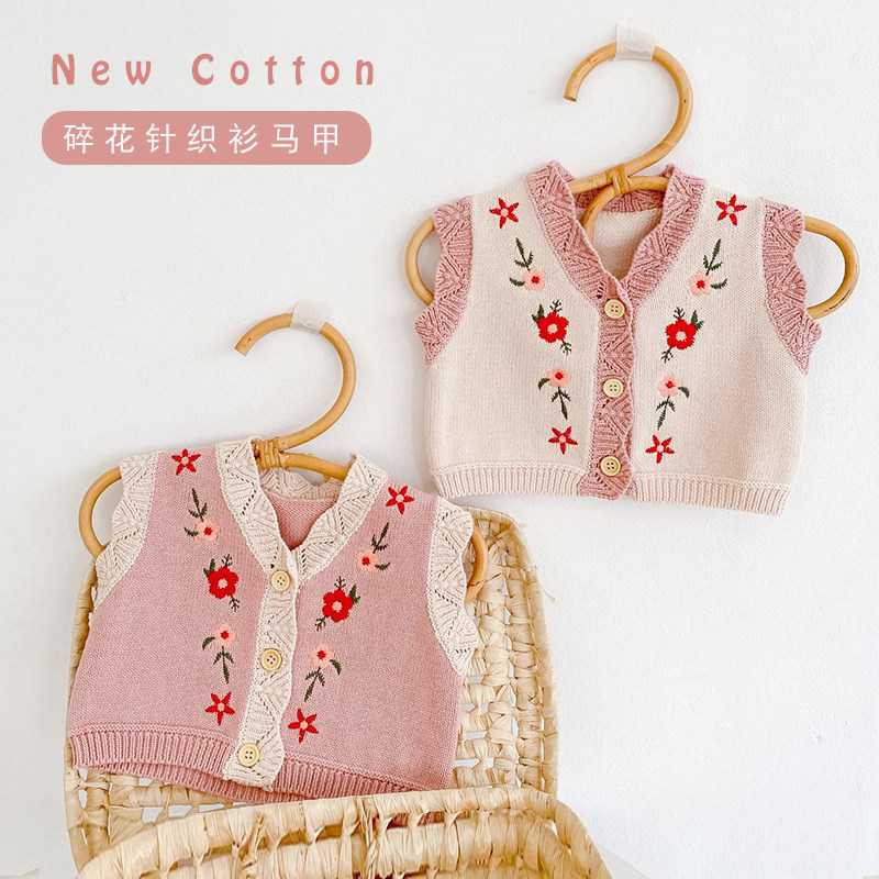 Girl's spring new sweater vests male and female baby knitwear spring autumn baby knit waistcoat Shoulder Foreign Pie