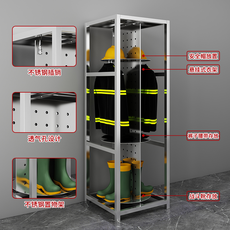 Custom fire suit hanger stainless steel storage rack bucket clothes rack changing rack rescue equipment fire suit storage rack battle