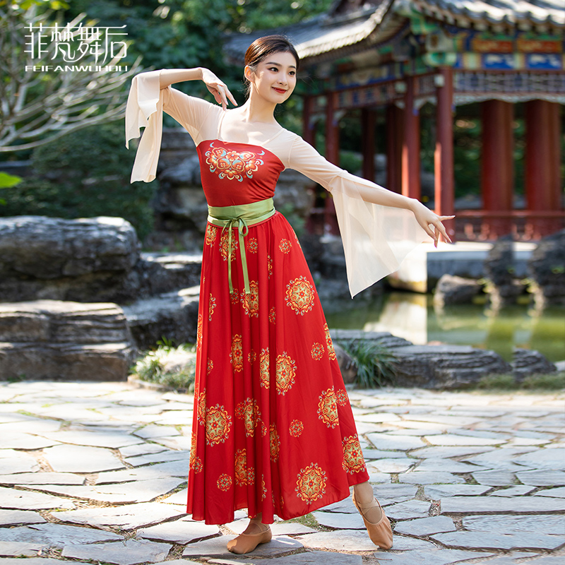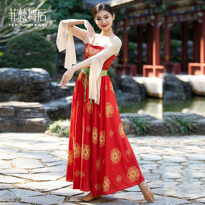 Fivan Dance After Han Tang Classical Dance Body Rhyme Dress Woman's Elegant Man Costume Don Quixote Red Skirt Suit