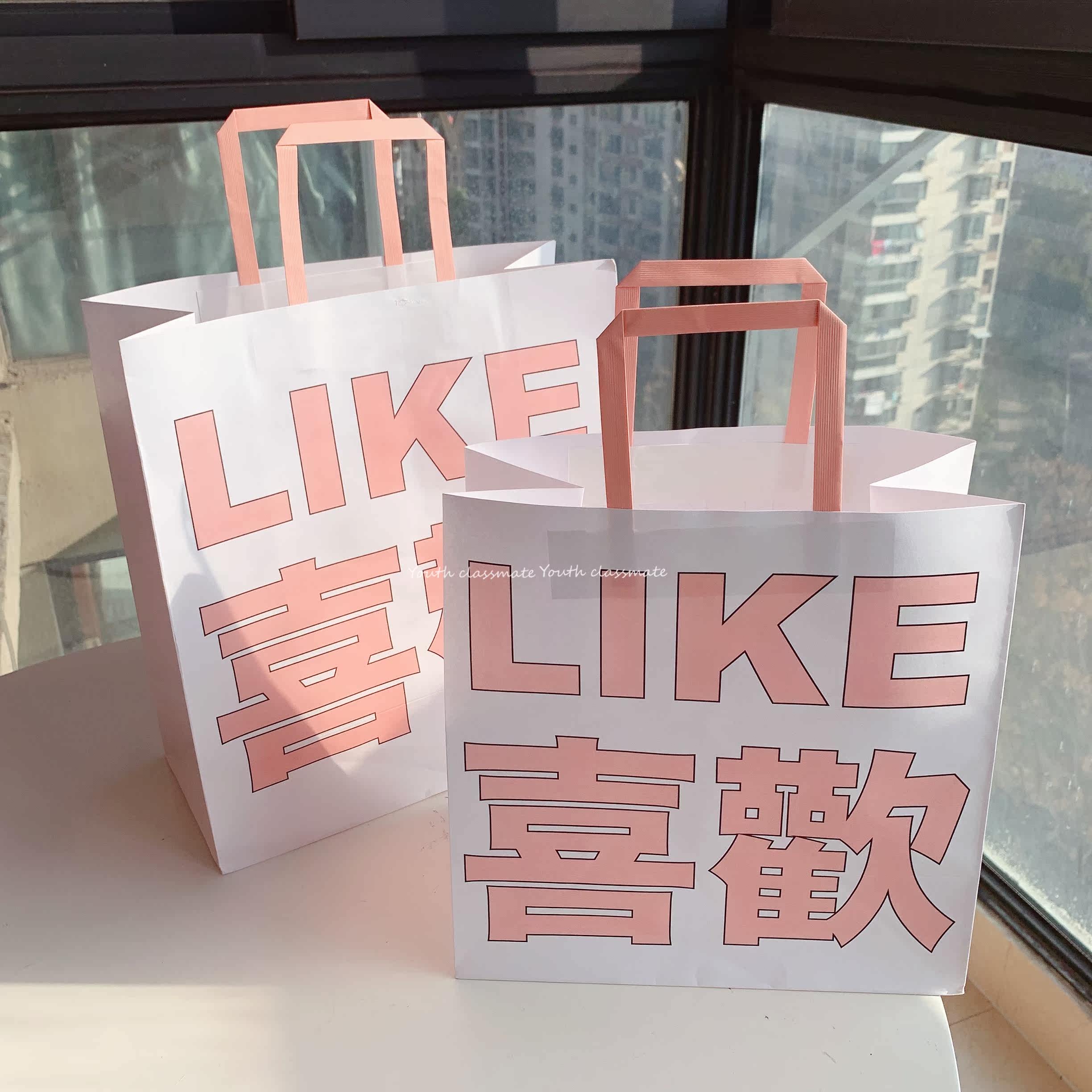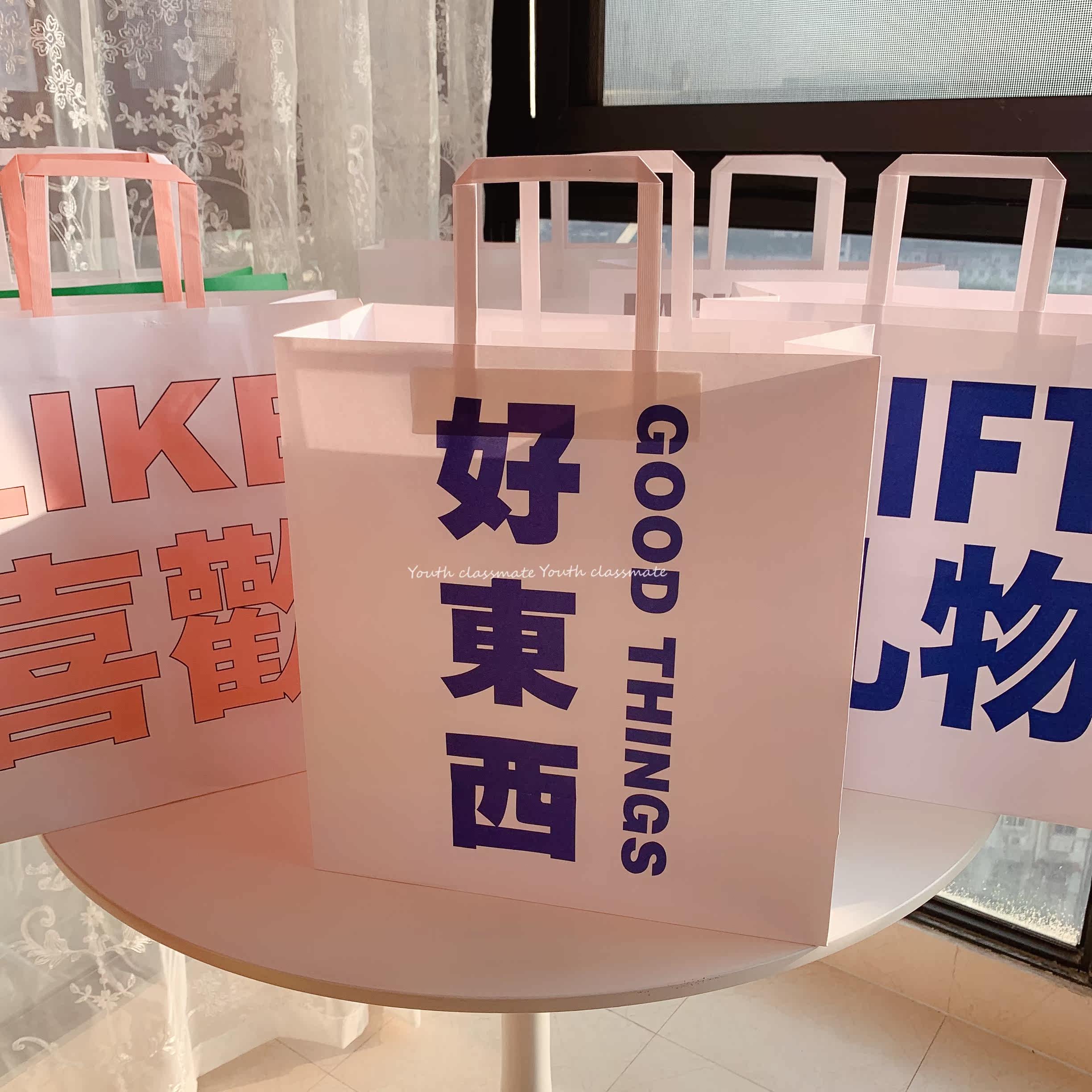 Gift for you] Ins wind minimalist about portable large capacity Blue and white gift bag Wrapping Paper Bag portable handbag