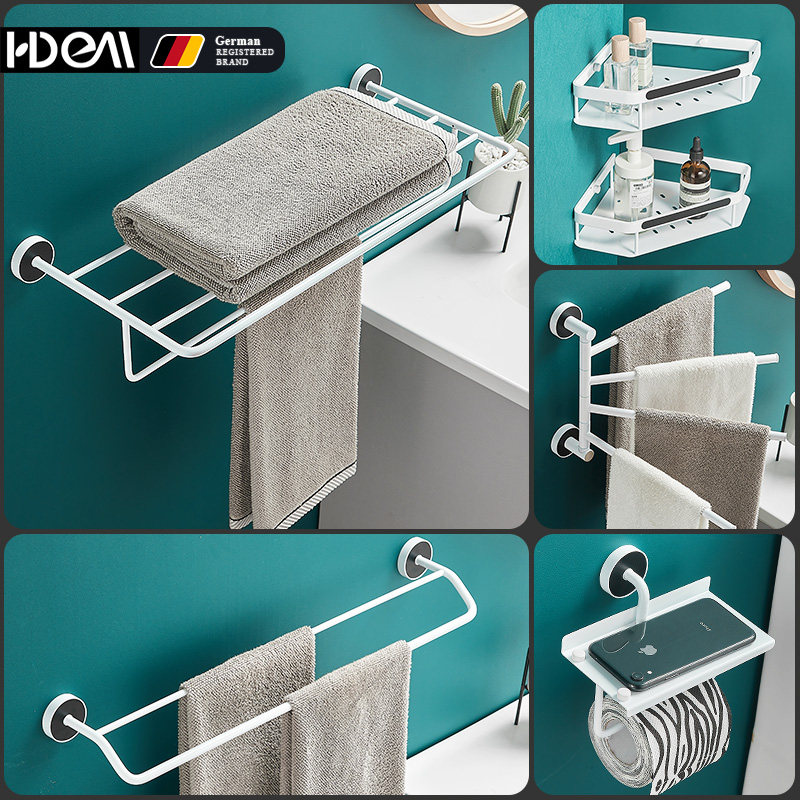 White Baking Varnish Bath Towel Rack Makeup Room Wall-mounted Shelf Light Extravagant Minimalist Hair Dryer Rack Toilet Paper Rack Slippers
