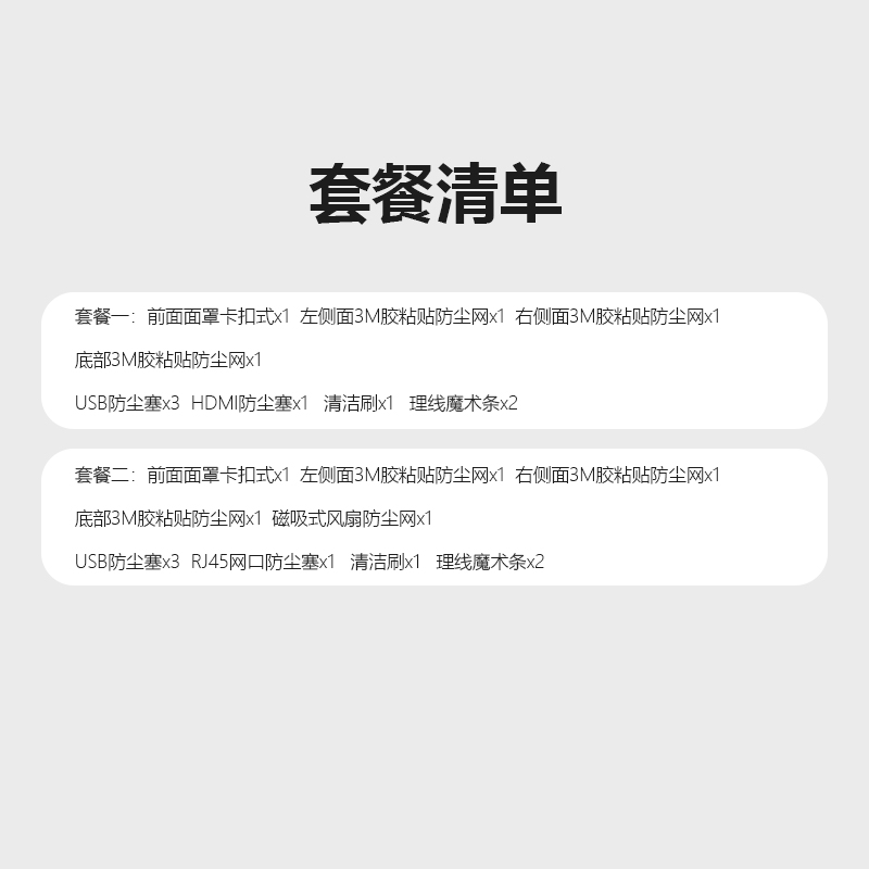 Package 1 (fan-free) package 2 (magnetic suction fan)