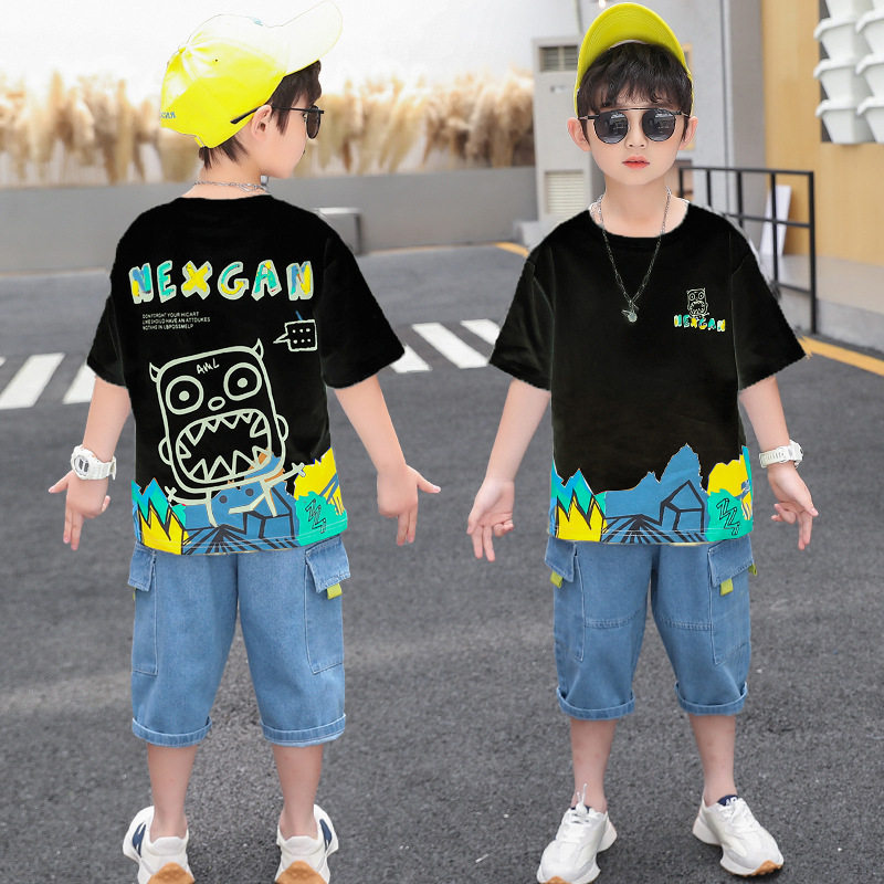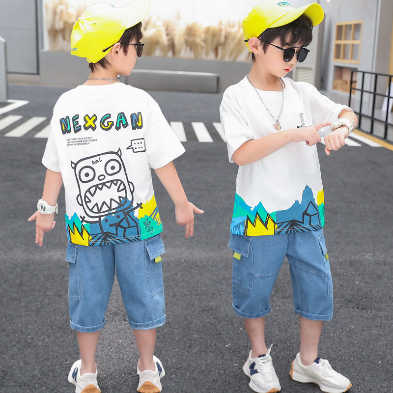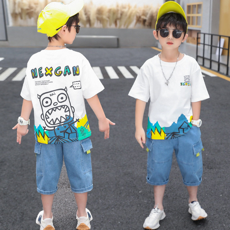 Boys summer suit 2022 new childhood network red - sleeved short - sleeved children's handsome sports two suits