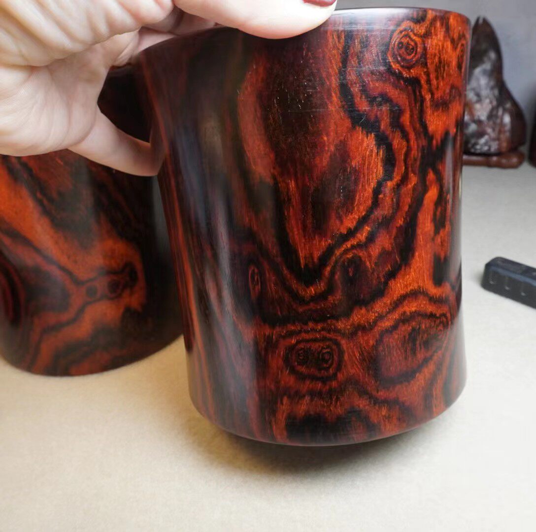 Mahogany old material pen holder Burmese big red acid stick grimace pattern illustration holder exquisite oversized solid wood pen box ornaments