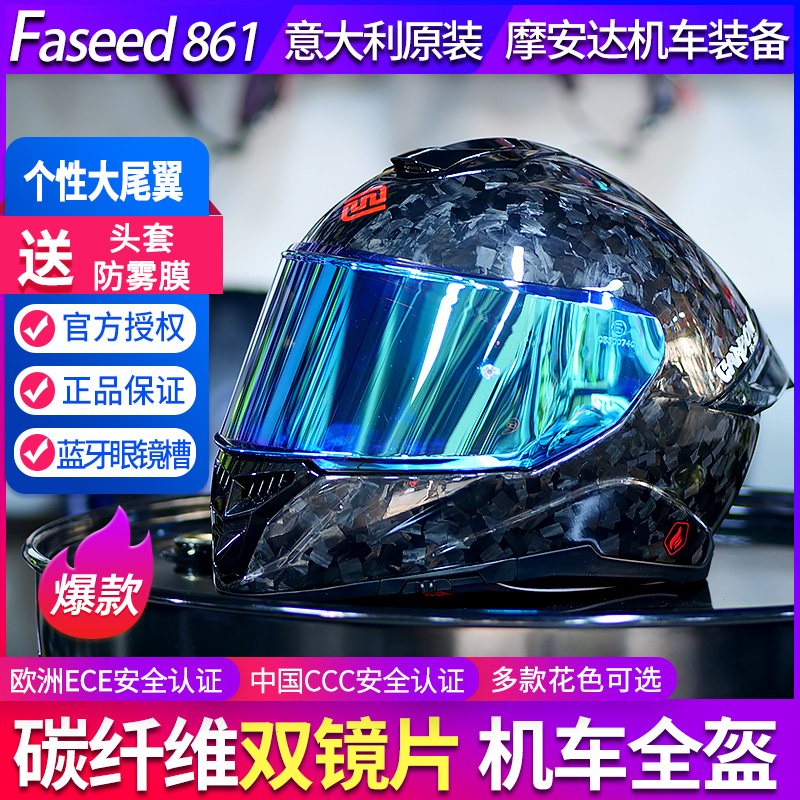 faseed861 motorcycle helmet built-in bluetooth headset men and women double lens motorcycle carbon fiber four seasons full helmet