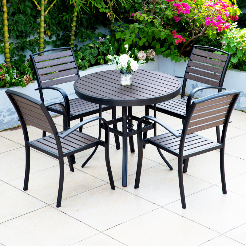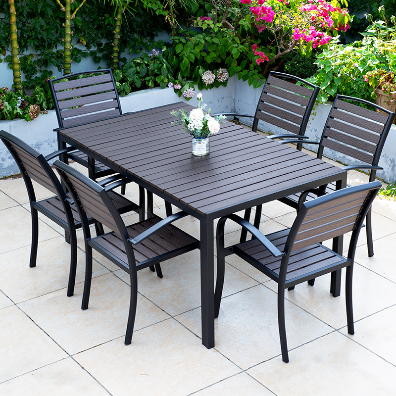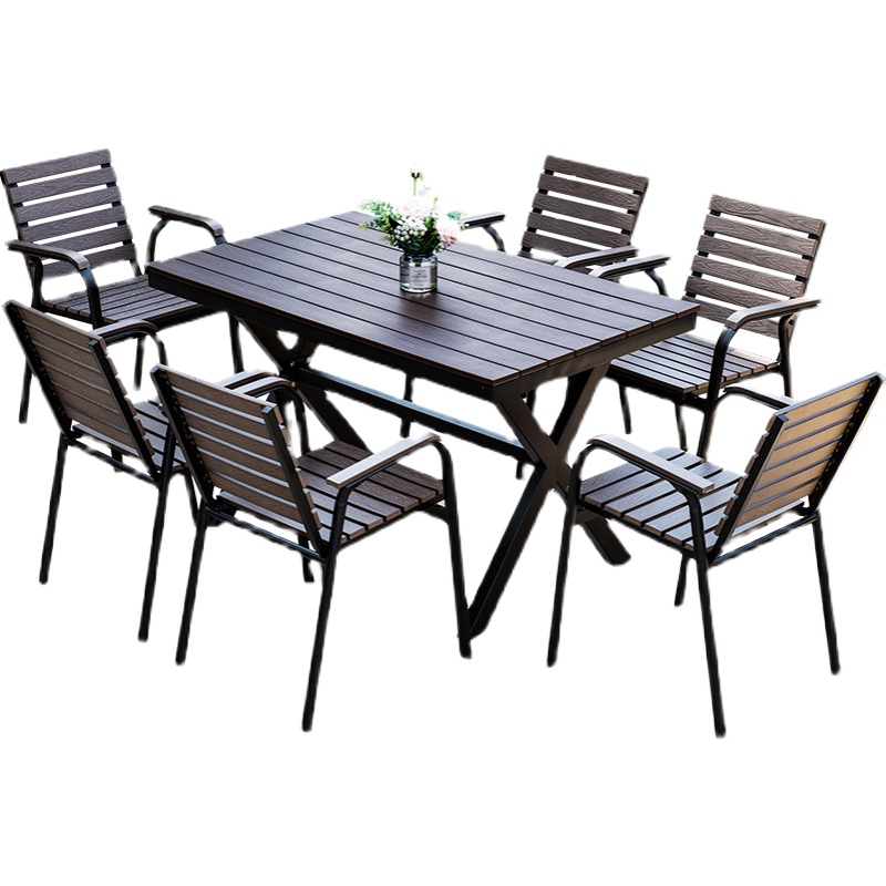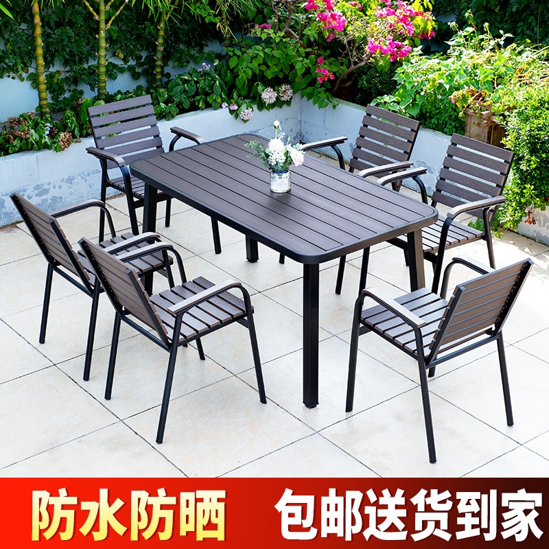 Outdoor plastic wood table and chair combination anti-corrosion wood waterproof sunscreen café outdoor outdoor outdoor terrace terrace table and chair