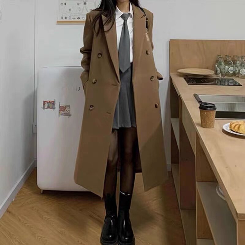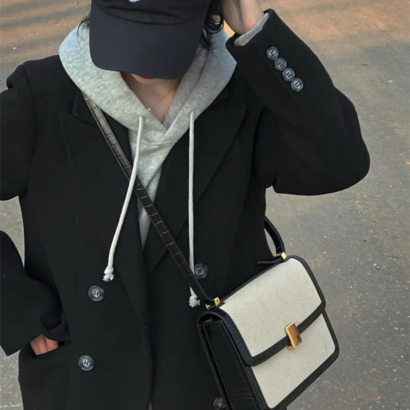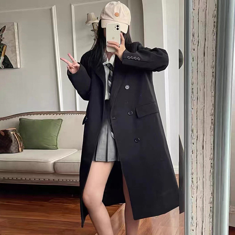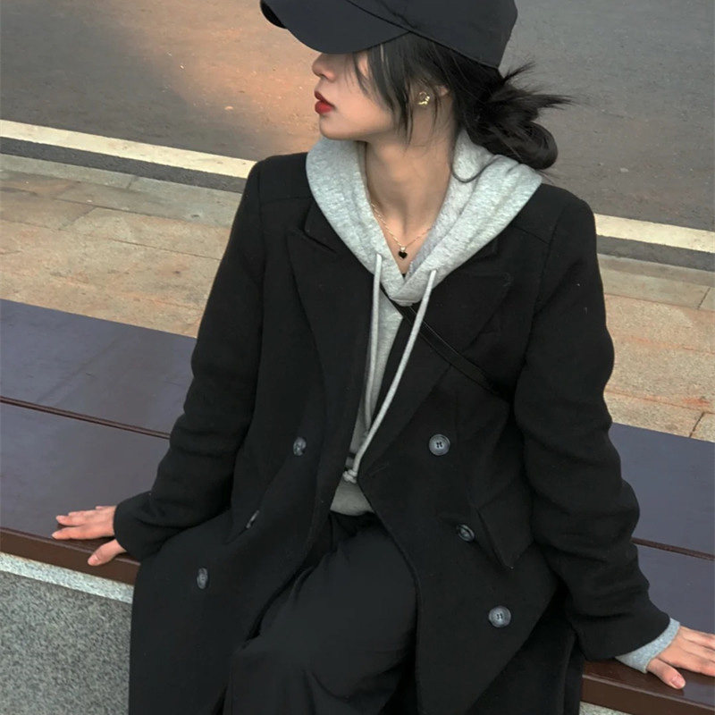 Black suit woolen coat women's mid-length version 2022 winter new Hepburn style thickened shoulder woolen coat