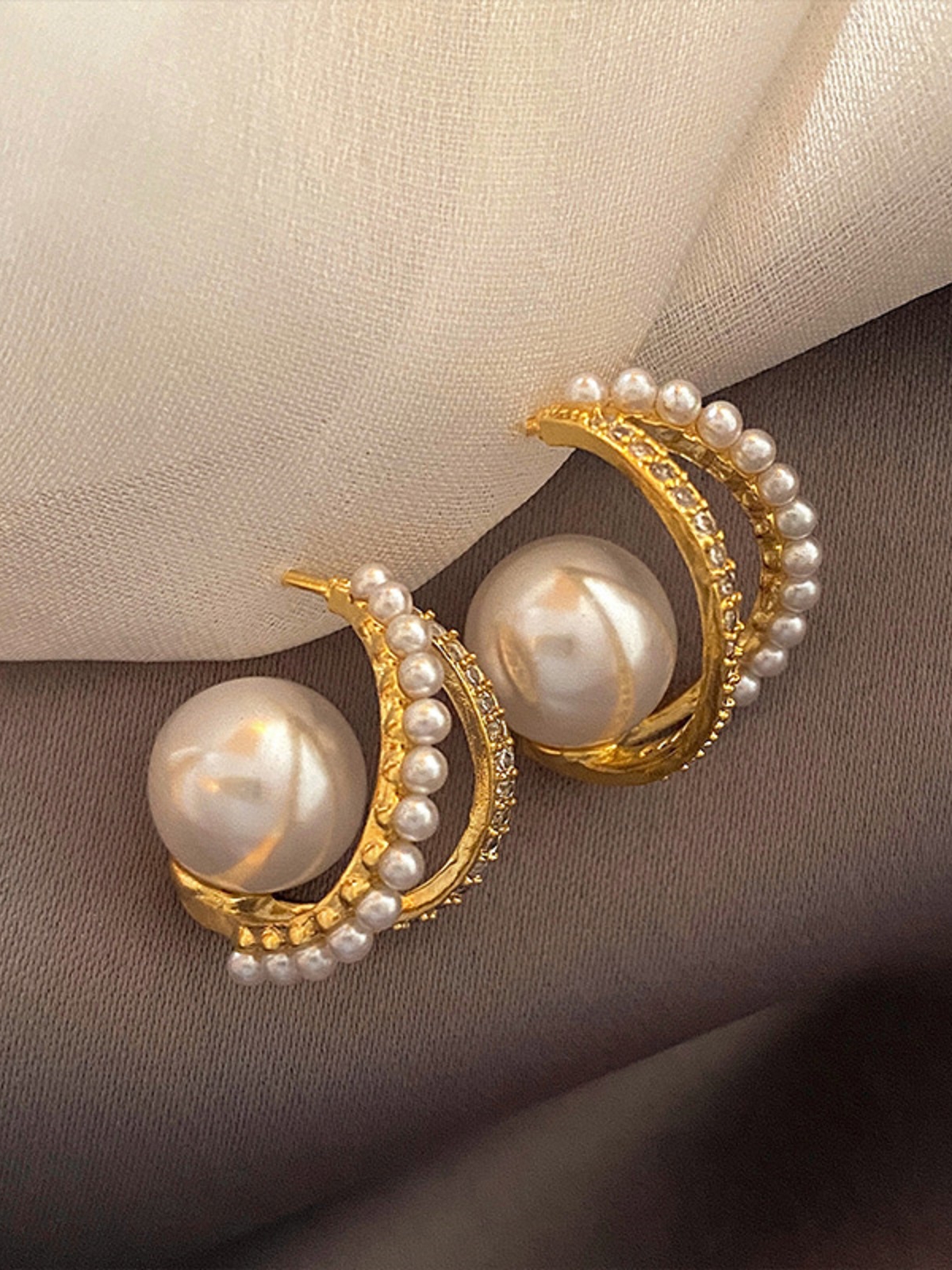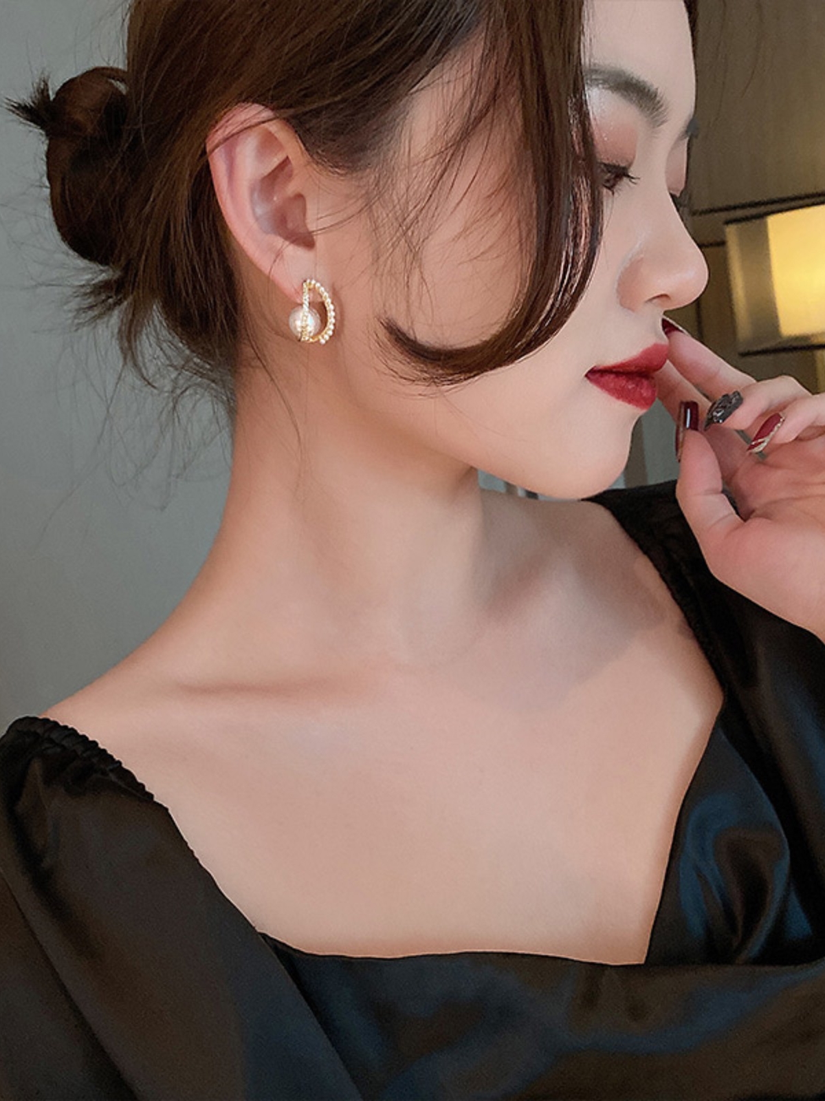 Month Half Bend ~ Good Romantic ~ Pearl Earrings Woman New Tide Fashion Ear Pins senior light extravagant and refined temperament ear accessories