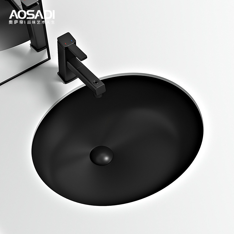 Ossa Oval in Germany Oval stage Basin Black Ceramic Washbasin Home Makeup room Embedded washbasin