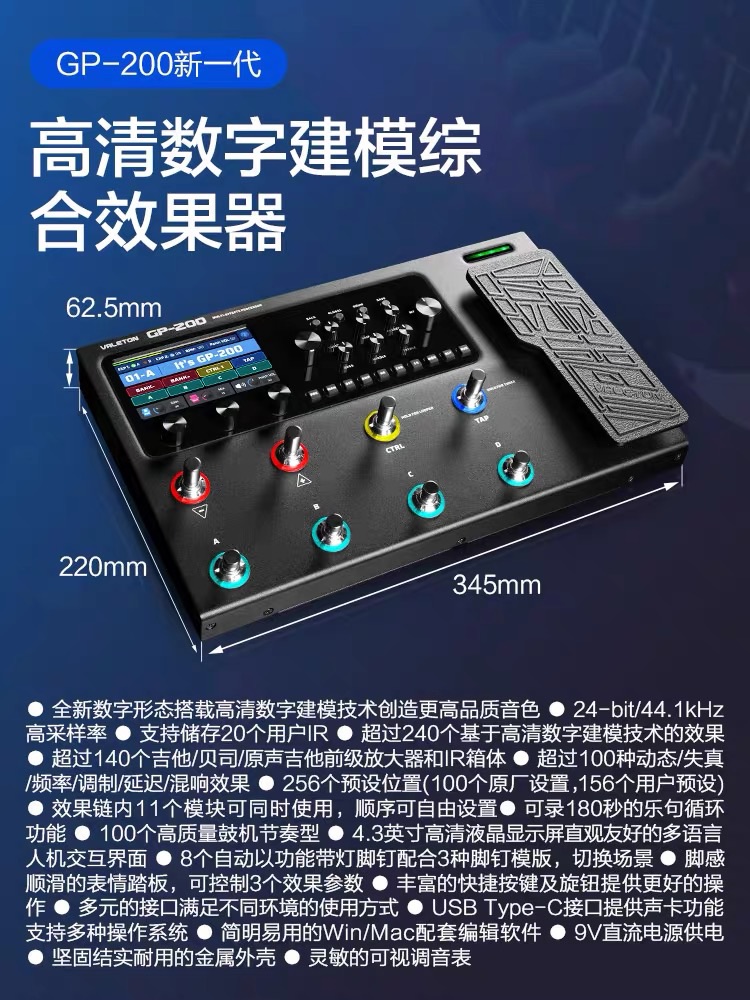 VALETON GP-200 electric guitar comprehensive effect device acoustic guitar bass phrase loop drum machine rhythm sound card
