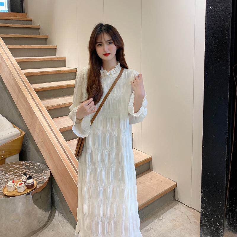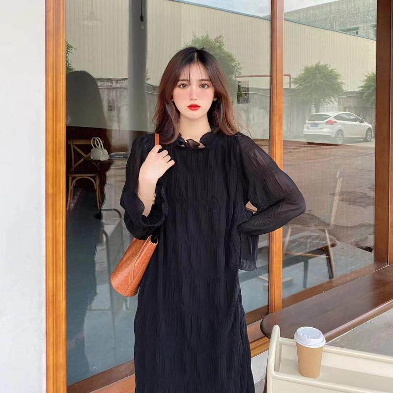 2022 new gentle wind spring and autumn Korean version fashion large size loose long-sleeved chiffon dress for pregnant women