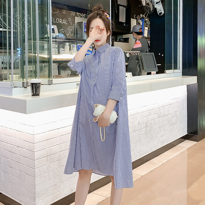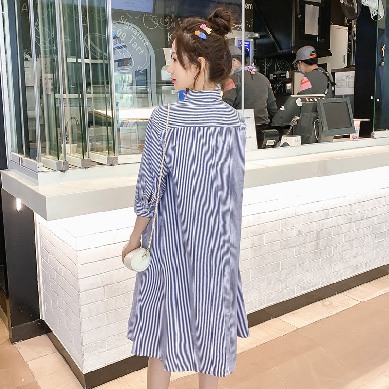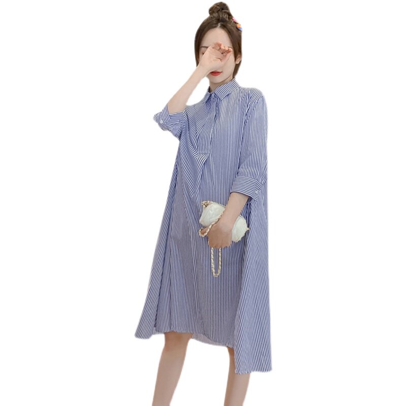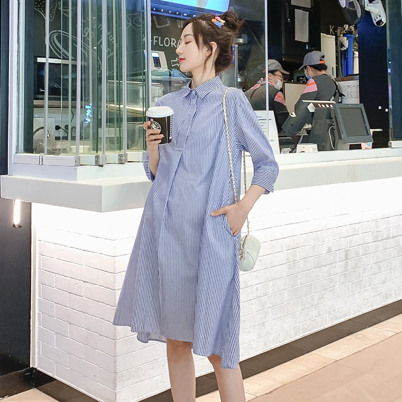 Pregnancy Woman Dress Spring Dress New Korean Version Of The Long Version Striped Ocean Dress Spring Large Scale Easy to Thin A-word Skirt Tide