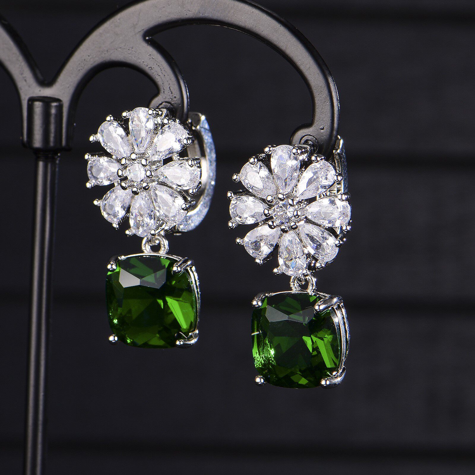 New style simulation emerald green tourmaline flash button female elegant square earring ear