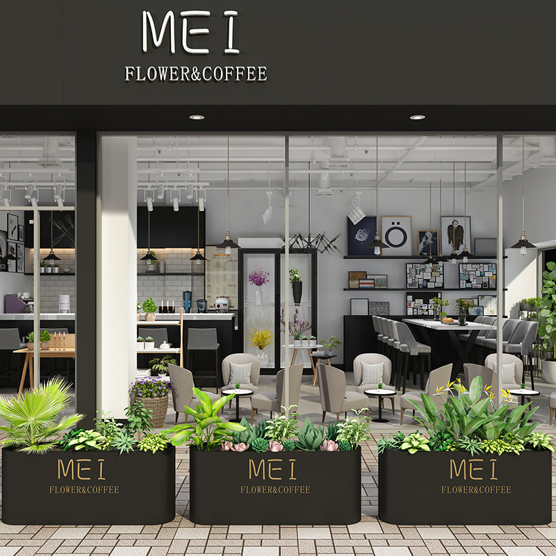 Outdoor stainless steel flower box commercial square rectangular flower pot courtyard swing planting box sales department combination flower bed