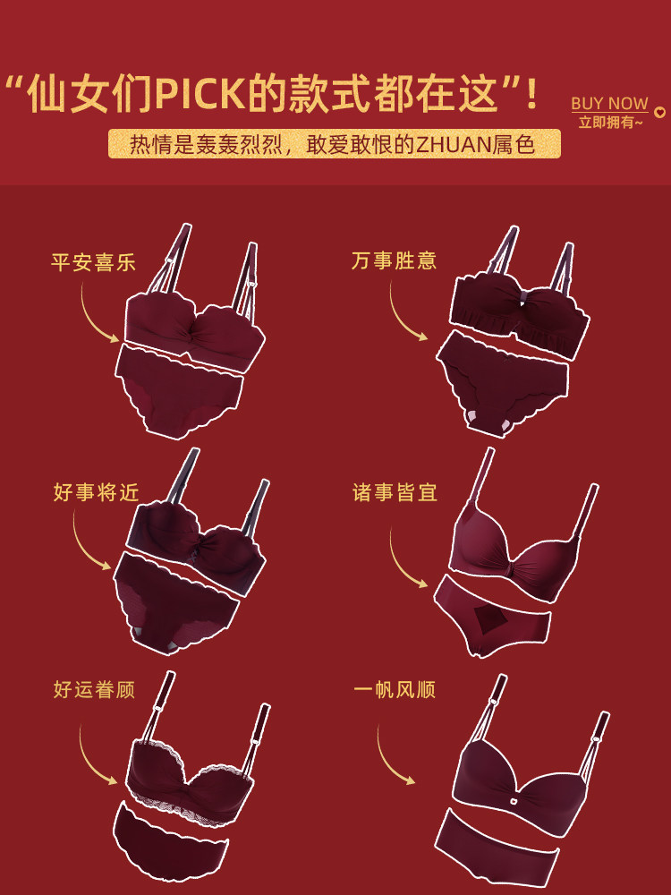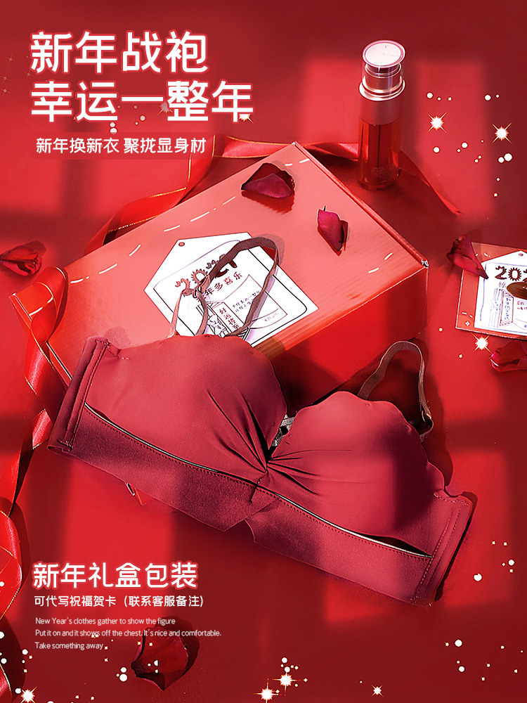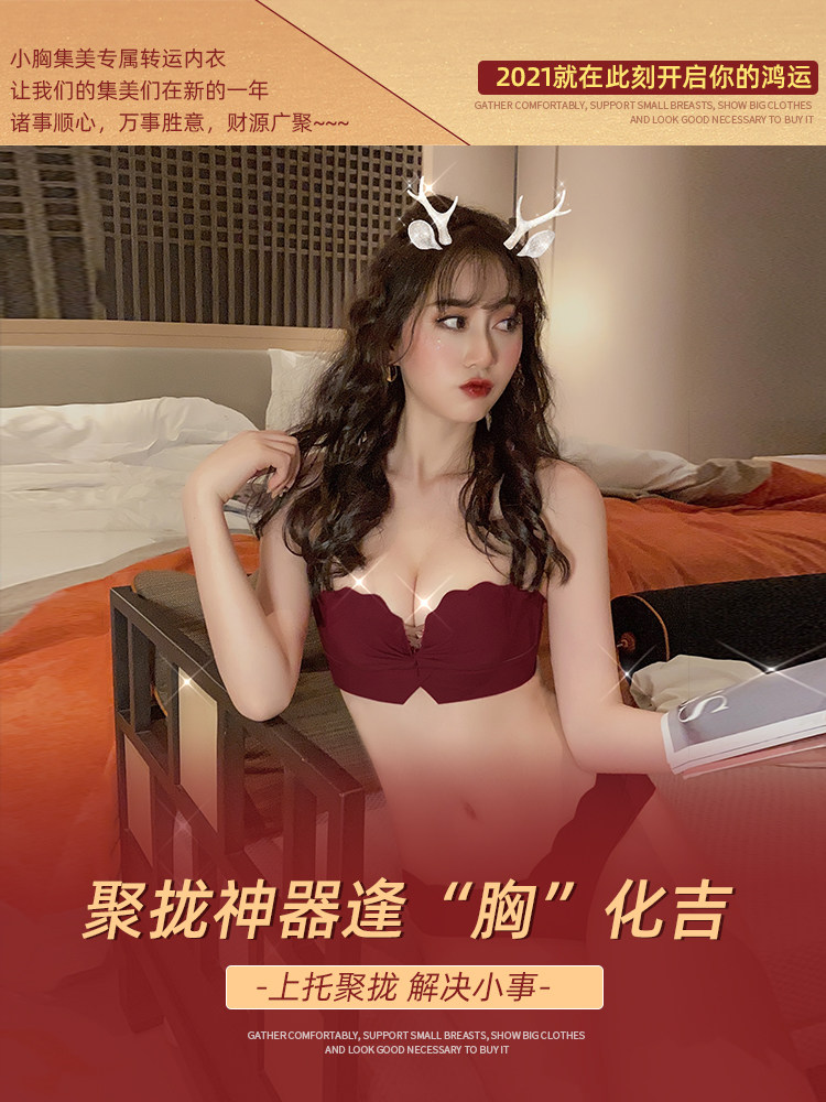 Anti-sagging underwear women's zodiac year red small breasts gathered on the collection of auxiliary breasts without steel ring adjustable bra set