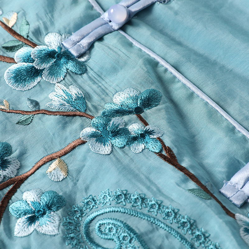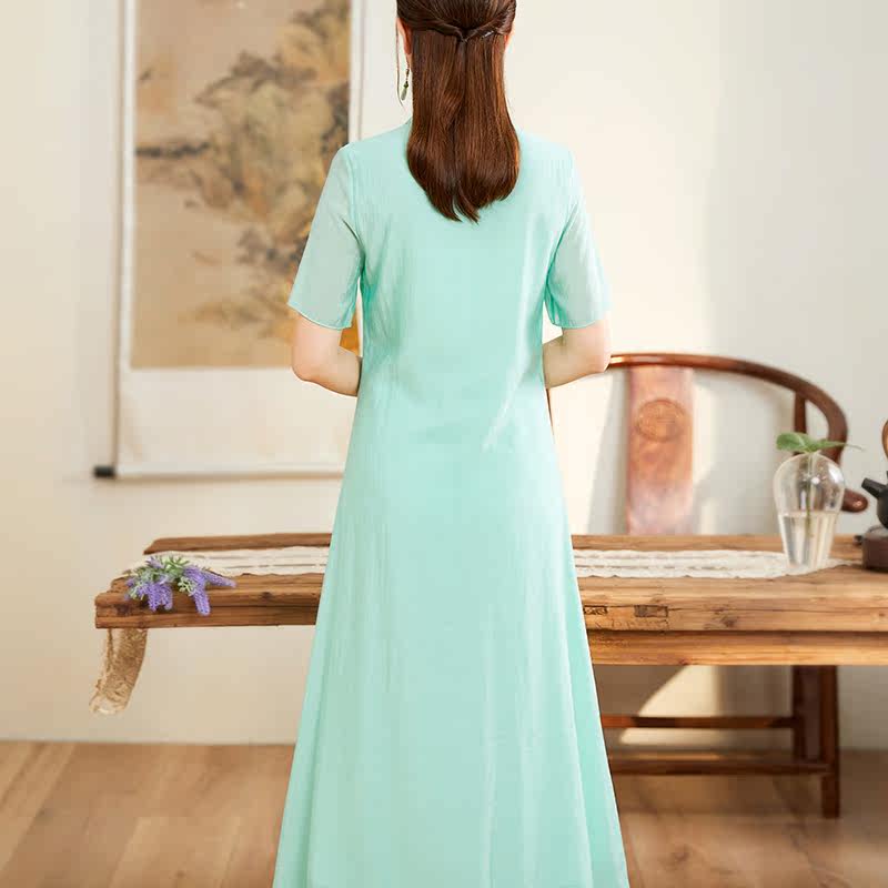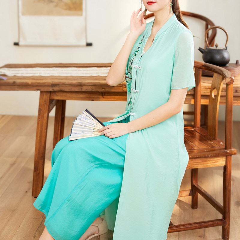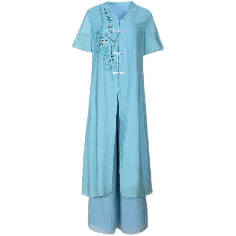 Improved Tang suit mother style spring and summer retro Republic of China suit embroidery ethnic style women's disc buckle tea suit women's two-piece set