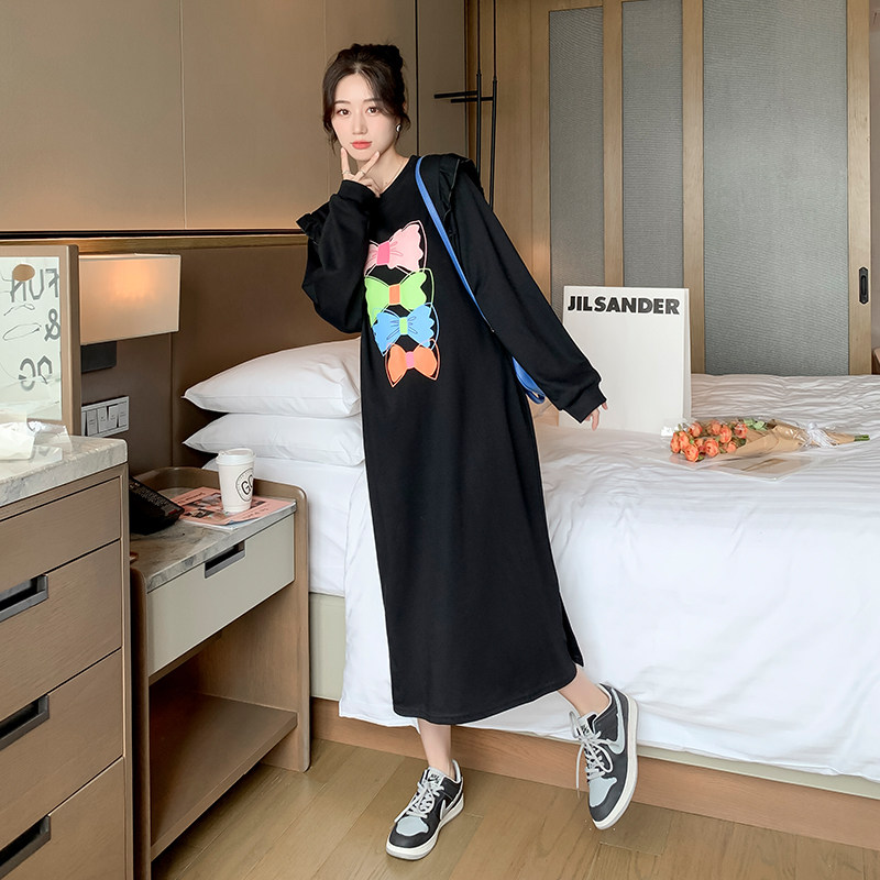 2022 Spring loaded with new gats, enlarged gestation with a slim and long version of thick cotton T Yang sent over with a knee opening fork and ocean dress