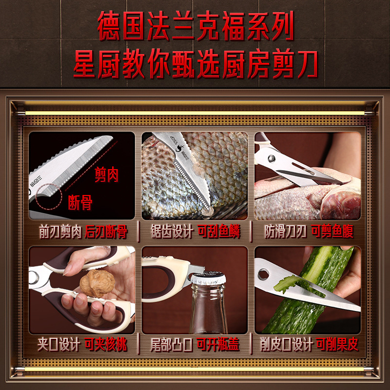 Multifunctional kitchen scissors barbecue scissors household strong vegetable chicken food stainless steel chicken bone scissors effortless