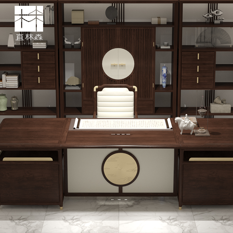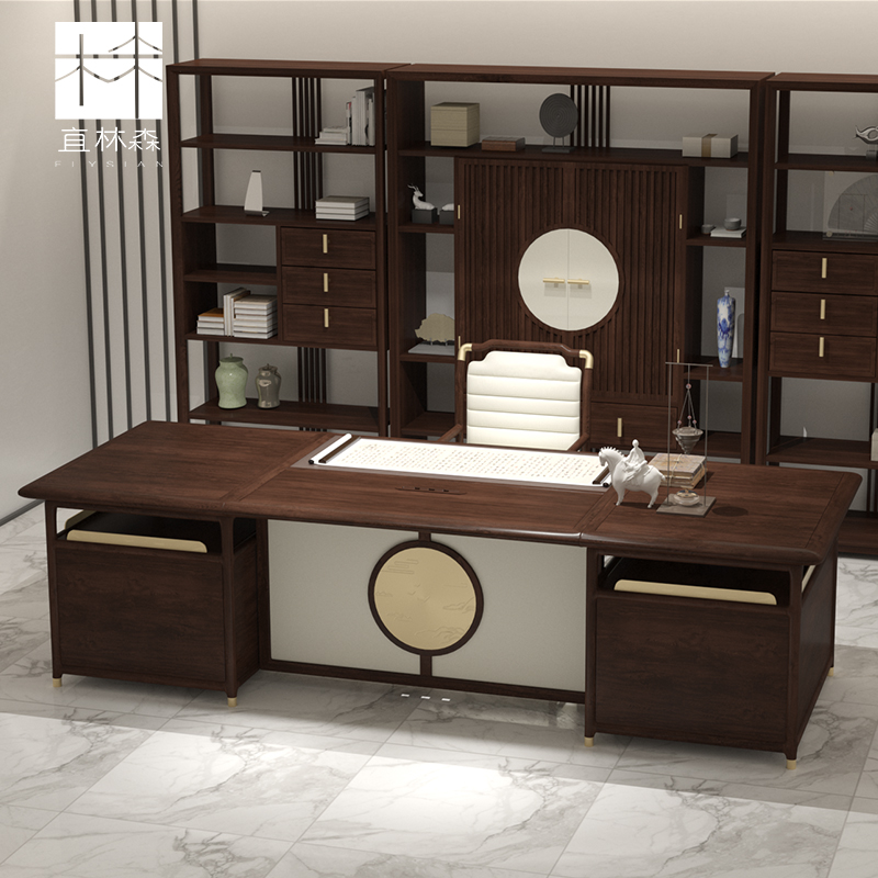 New Chinese desk and chair combination of simple modern Zen boss Table Solid Wood President Table Atmospheric class furniture