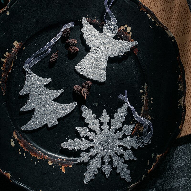 Korean ins acrylic glitter Christmas snowflake Christmas tree little angel pendant transparent Christmas decorations charm