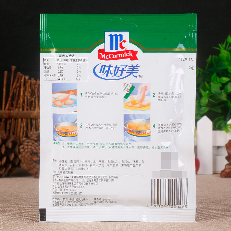 Wheat flour breadcrumbs (wheat flour water yeast edible salt) edible salt monosodium glutamate white pepper powder garlic powder onion powder food additives (sodium bicarbonate disyhydrogen disodium dihydrogen phosphate dihydrogen phosphate dihydrogen phosphate) egg white powder, etc., subject to the actual information of the outer packaging of the product.
