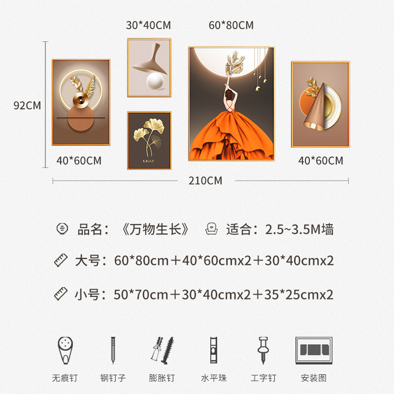 2021 new light luxury living room sofa background wall decorative painting high-end irregular combination painting mural