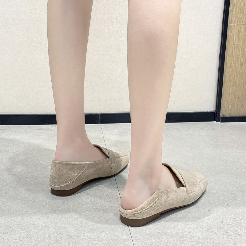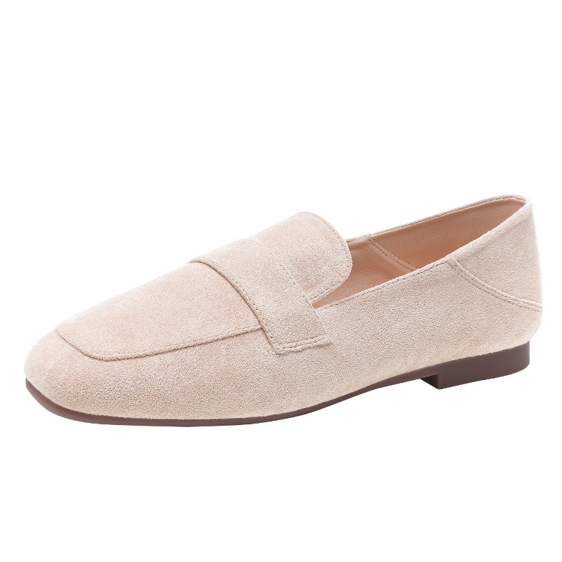 Inglées small leather shoes women fit small dresses with slim suede flat bottom One foot pedal Lefoe shoes spring soft bottom deep mouth single shoes