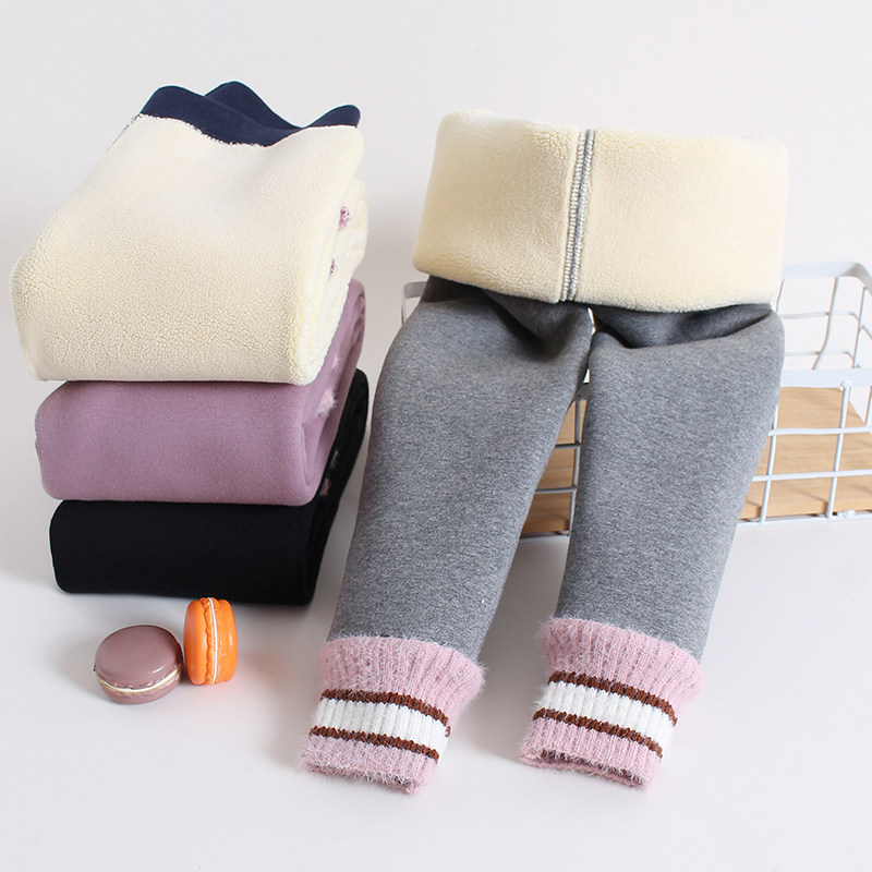 Girl inside lap pants winter plus suede thickened pure cotton integrated suede pants lamb suede foreign wear children warm pants